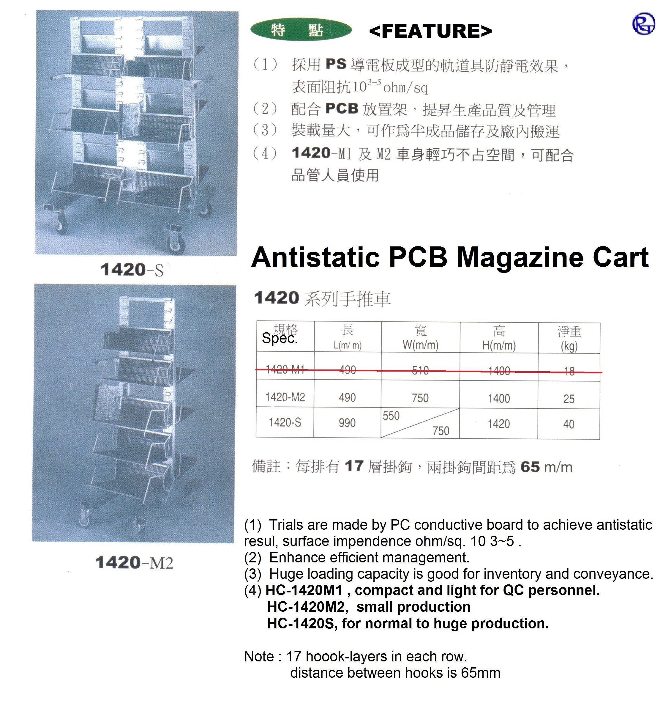 HC-1420M2 Chariot de magasin de PCB antistatique