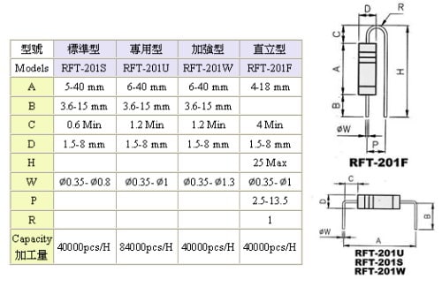 | Taped Axial Lead Former & Cutter [Stand-up F type] : RFT-201F Forme et coupeuse de plomb axiale en ruban [F-type debout] : RFT-201F | |
